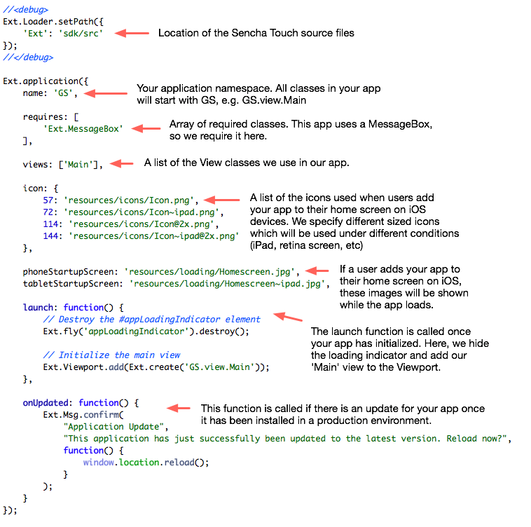 2.[INFO] Created file /Users/nickpoulden/Projects/sencha/GS/.senchasdk3.[INFO] Created file /Users/nickpoulden/Projects/sencha/GS/index.html4.[INFO] Created file /Users/nickpoulden/Projects/sencha/GS/app.js5....這將會(huì)產(chǎn)生一個(gè)叫做GS的Sencha Touch應(yīng)用骨架,放在../GS目錄下。骨架應(yīng)用中包含了所有你創(chuàng)建一個(gè)Touch應(yīng)用所需要的東西,包括默認(rèn)的index.html,一份Touch SDK的拷貝,CSS,圖片和打包你的應(yīng)用所需的配置文件。
